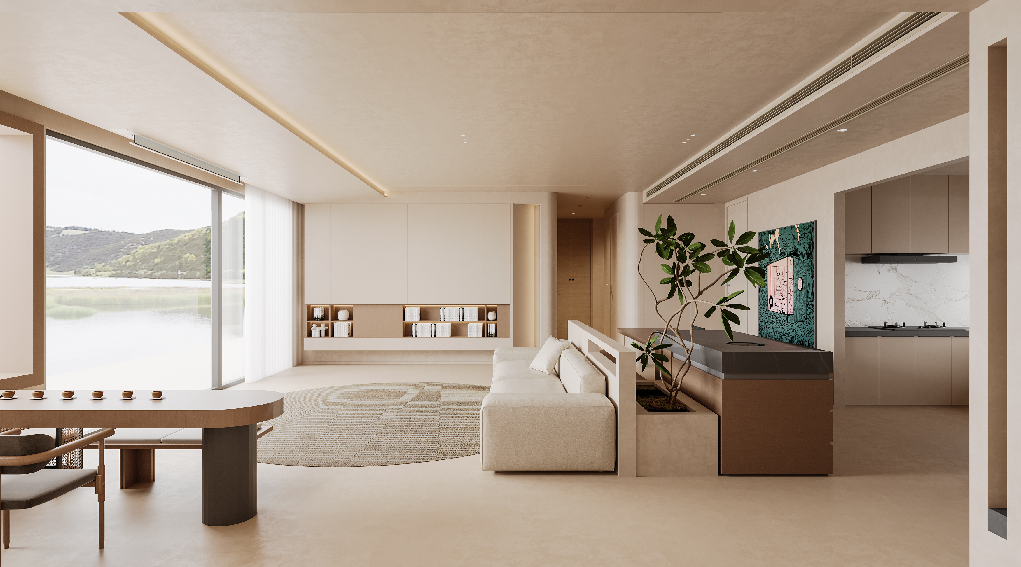? 中性色調:以大地色、米色、高級灰等中性色為主,營造出寧靜、沉穩的氛圍。